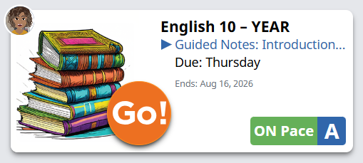 The current item is displayed below the course title, along with the day the item is due or if it is past due.