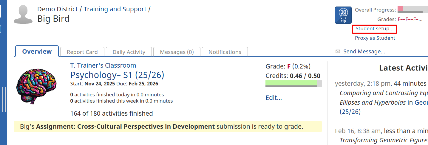 - Navigate to the student’s dashboard.