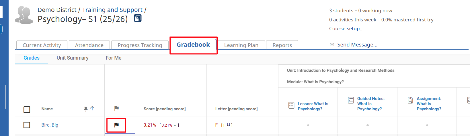 - Selecting the flag icon next to the student’s name