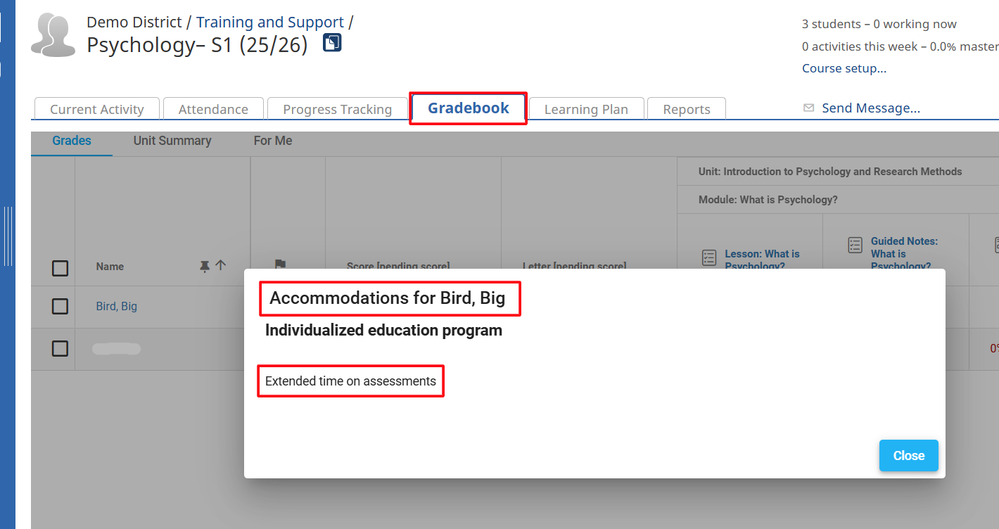Viewing Accommodations in the Gradebook