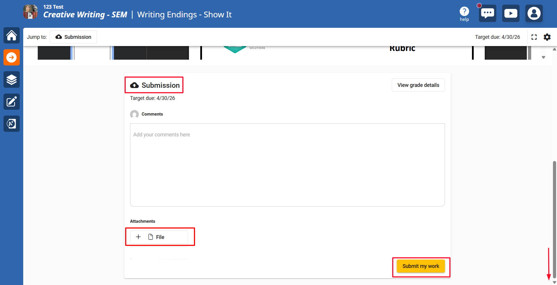 - If your teacher requires submission, attach the downloaded completed worksheet to the submission box and click the Submit My Work button.
