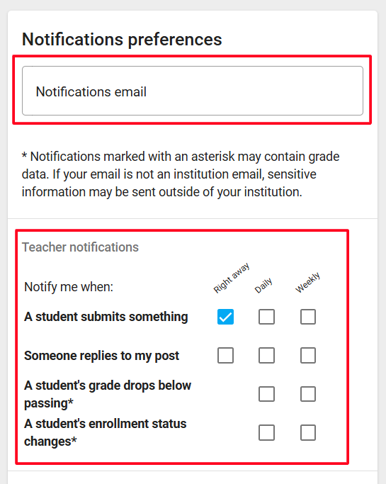 - Buzz (LMS) notifications → Course activity (e.g., student submissions, replies, updates)