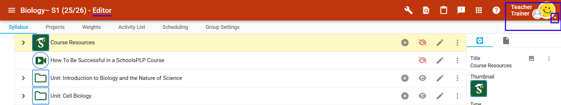 - Expand the dropdown in the upper right below the person icon